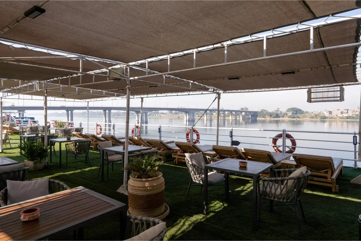 Mid-size Nile cruiser with sun-deck pool, lounge/bar, buffet restaurant and small shops. A comfortable, river-first boat for classic Luxor–Aswan sailings.